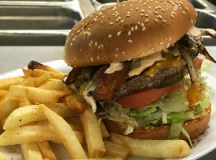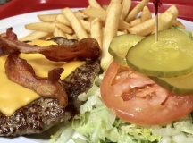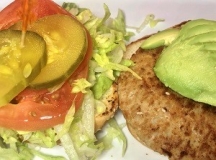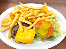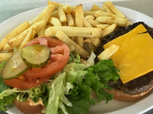 A Choice of Hamburger Patty, Chicken Breast or Turkey Breast, Cottage Cheese, Peach, Tomato, Lettuce, Cucumber, No Bun
