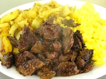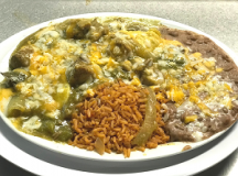Sizzling Plate with Your Choice of Chicken or Steak, Choice of Flour or Corn Tortillas, Sauteed Bell Peppers, Onions and Diced Tomatoes, Served with Rice and Beans